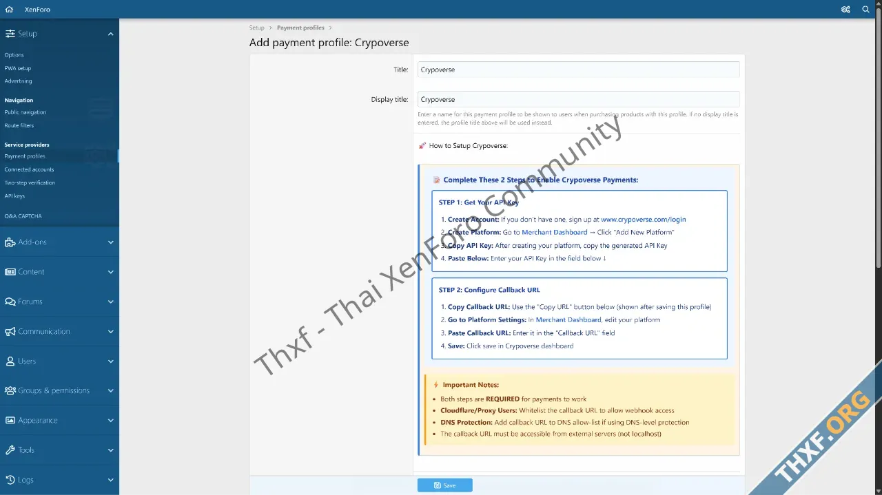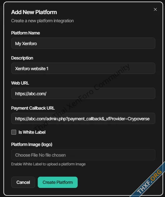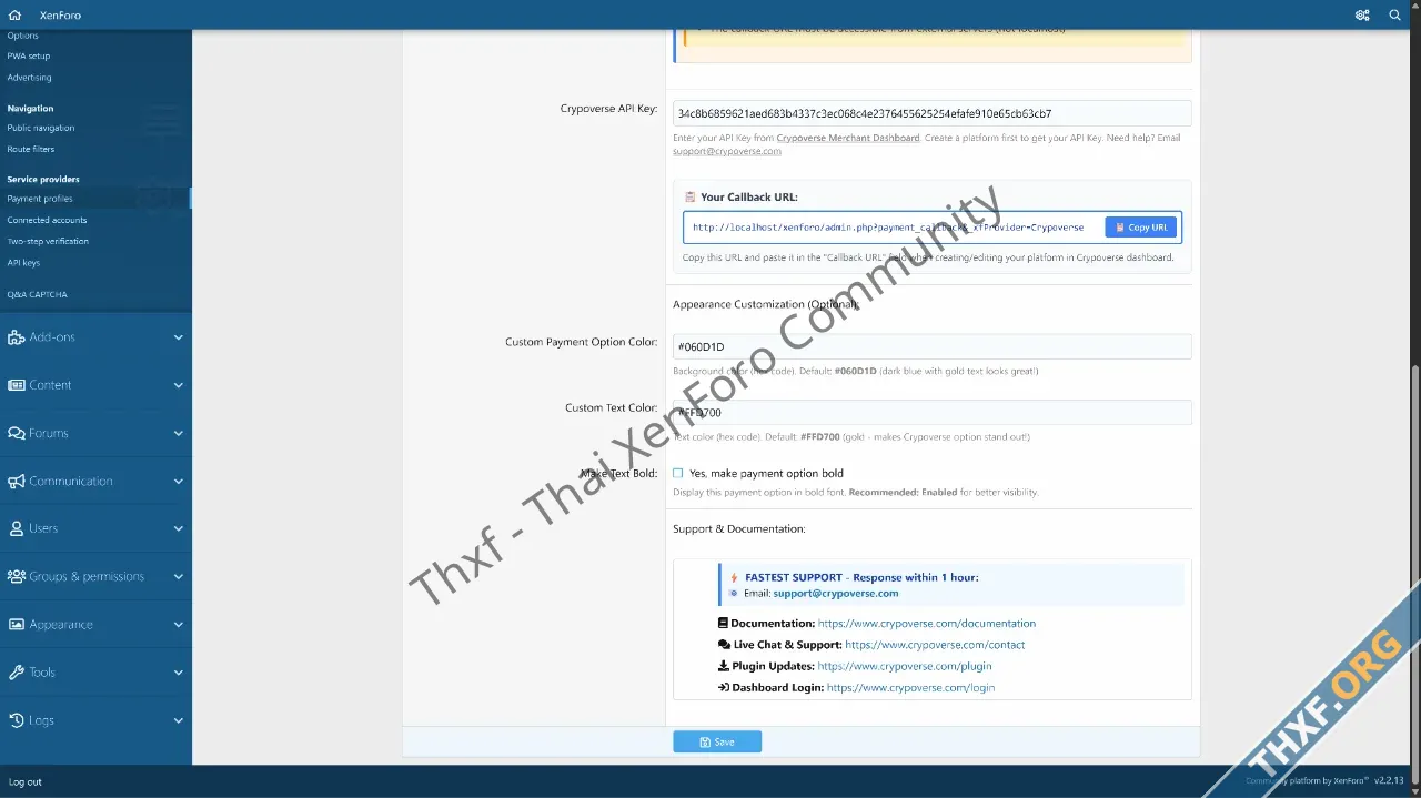 For end-to-end Xenforo integration, visit: https://www.crypoverse.com/plugins/xenforo-payment-gateway-plugin or contact us [email protected].