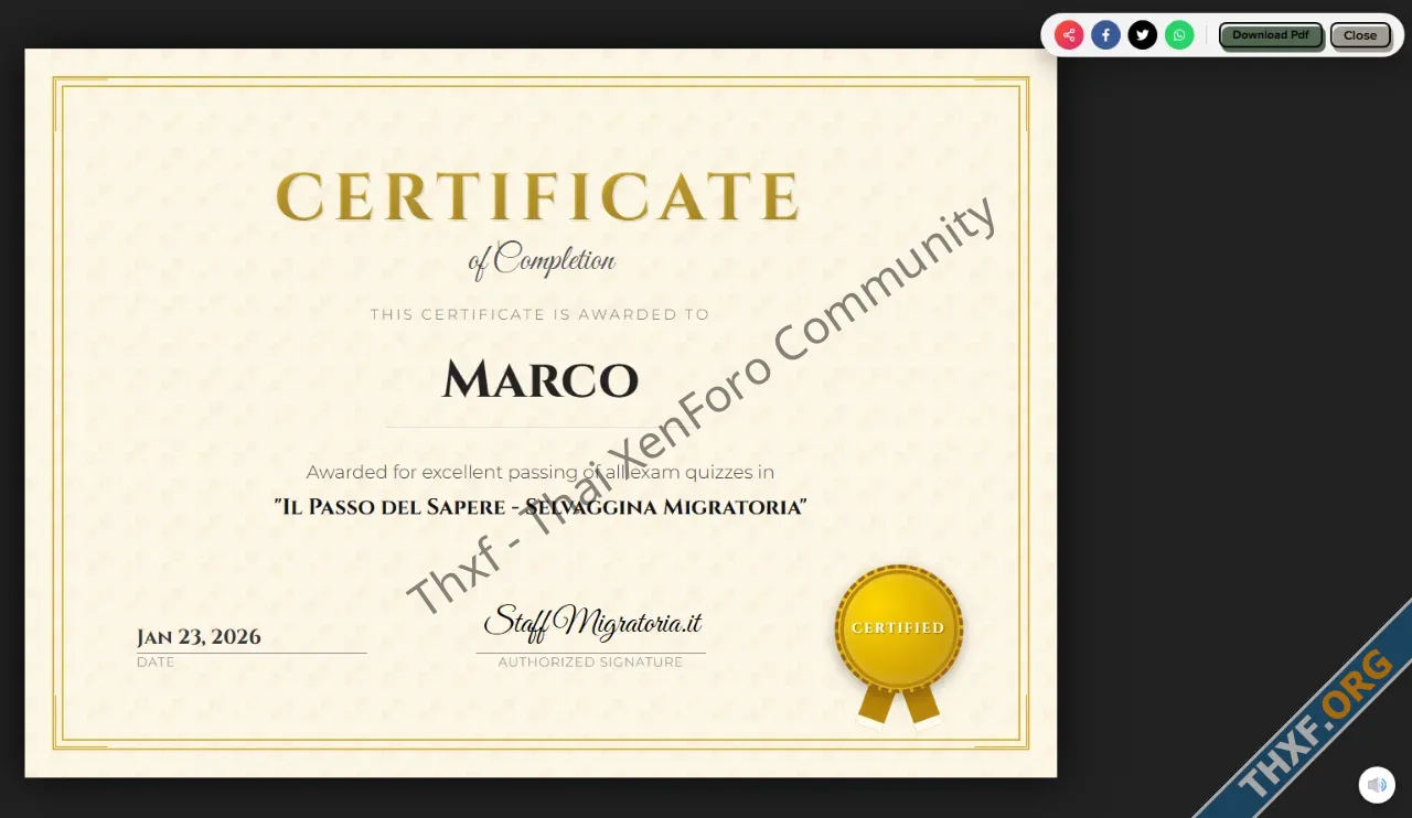 THE KILLER FEATURE: Certificates: Automatically issue beautiful, downloadable PDF Certificates to users who complete a quiz or an entire category. A massive incentive for your users!