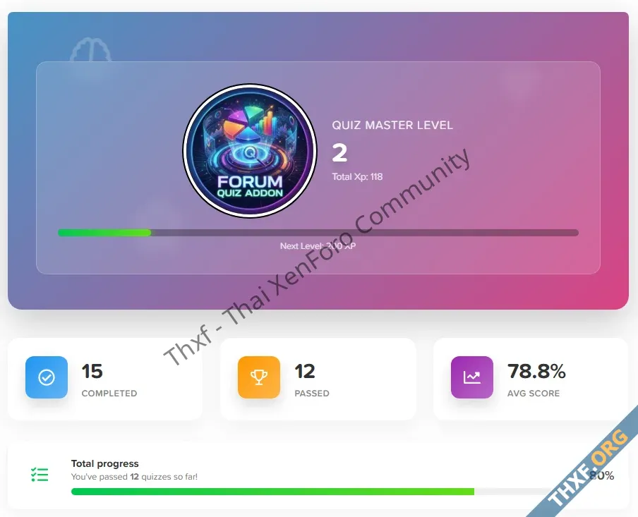- XP & Level Synchronization: Unified the XP calculation engine across the entire board. The Global Podium, the Top Users widget, and the Postbit User Levels are now perfectly synchronized and will strictly count points earned from "visible" quizzes only.