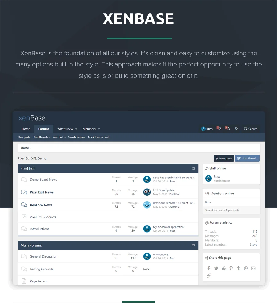 เวอร์ชัน XF ที่เข้ากันได้ 2.22.3 ใบอนุญาต https://pixelexit.com/help/license-agreement/ การสร้างแบรนด์ที่มองเห็นได้ ใช่ แต่สามารถลบได้โดยการชำระเงิน Style 2.3 Feel The Teal 1.0.0.2 Style 2.3 Bolt - PixelExit.com 2.2.12