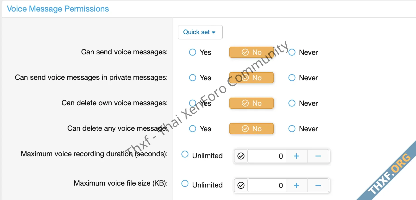 Permissions for deleting one's own voice messages or those of other users.