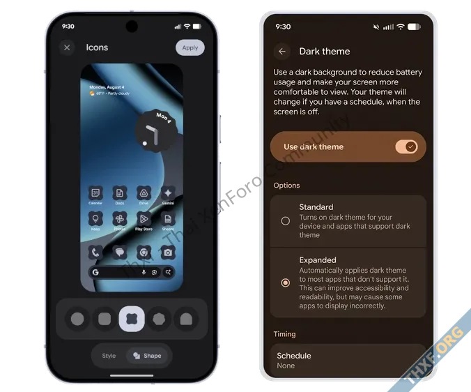 - Dark Theme แบบไปสุดกว่าเดิม เพิ่มโหมด Expanded สำหรับคนต้องการมืดสุดๆ หรือมีปัญหาด้านสายตา ต่อให้แอพไม่รองรับ Dark Theme ระบบจะจัดการบังคับให้เอง