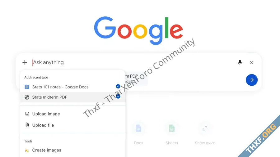 • AI Mode สามารถค้นหาและสรุปข้อมูลเฉพาะบางแท็บที่เปิดไว้ วิธีใช้งานคือกดปุ่ม + หน้ากล่อง search แล้วเลือกเฉพาะแท็บที่ต้องการได้ (เลือกผสมกับอย่างอื่นด้วยก็ได้ เช่น รูปภาพ ไฟล์)