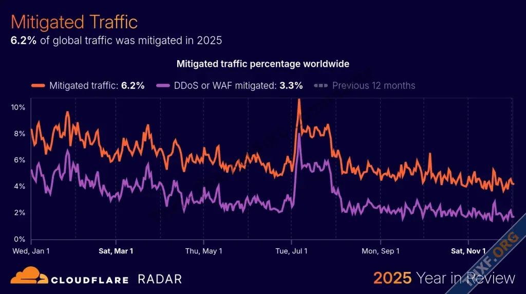 Cloudflare เผยแพร่รายงานภาพรวมและแนวโน้มบนอินเทอร์เน็ตของปี 2025 Cloudflare Radar Year in Review ปริมาณทราฟิกการใช้อินเทอร์เน็ตทั่วโลกเพิ่มขึ้น 19% และมีการเติบโตที่สูงขึ้นมากนับตั้งแต่เดือนสิงหาคมเป็นต้นมา