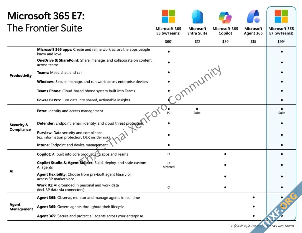 ต่อเนื่องจากการเปิดตัว Copilot Cowork ไมโครซอฟท์ก็ประกาศออกแผนใช้งาน Microsoft 365 สำหรับลูกค้าองค์กรตัวใหม่ Microsoft 365 E7 เป็นแพ็คเกจสูงสุดคิดราคา 99 ดอลลาร์ต่อหนึ่งบัญชีต่อเดือน (E5 ที่เคยแพงที่สุดราคา 60 ดอลลาร์)
